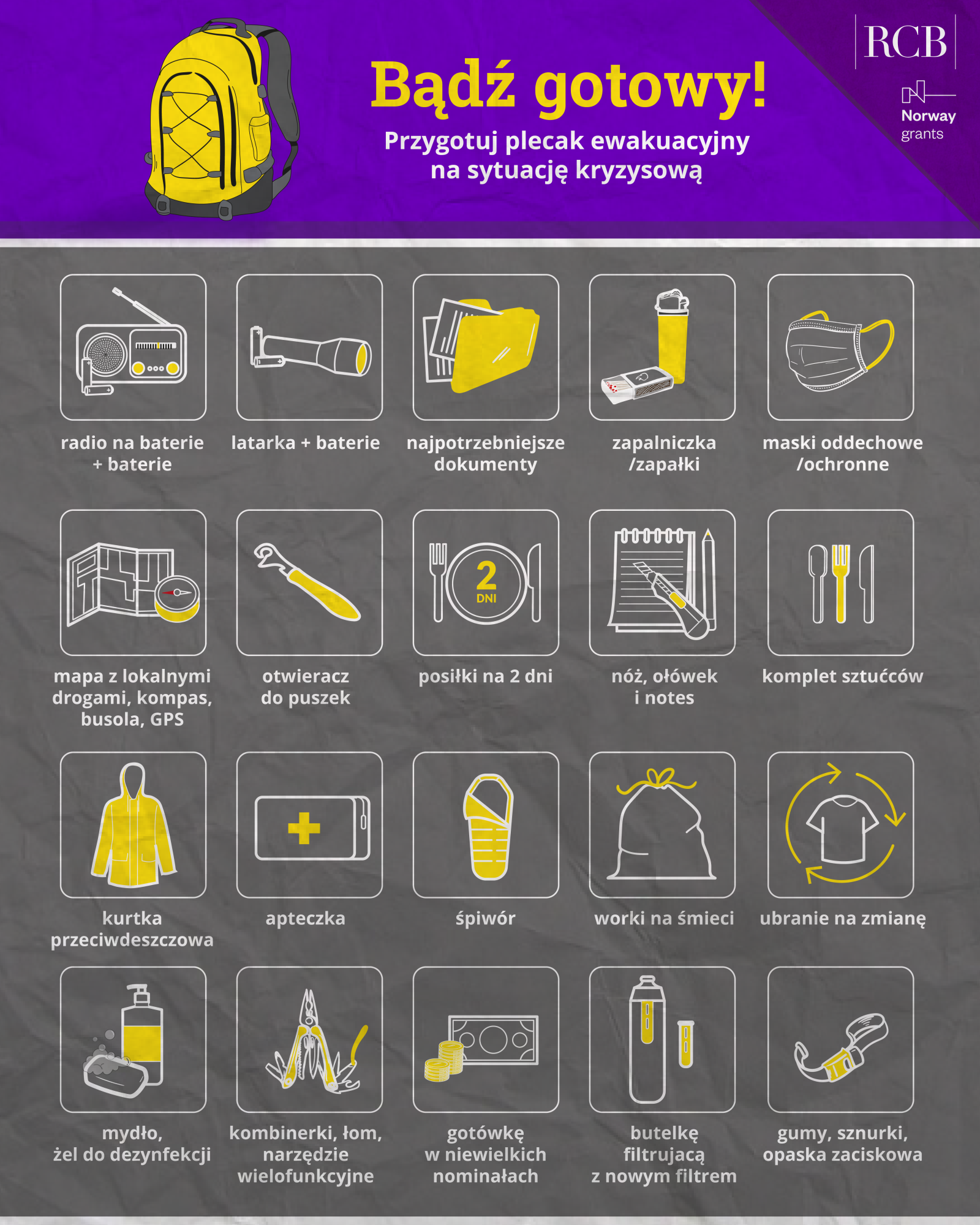 Co powinno znaleźć się w plecaku ewakuacyjnym? (wg RCB)
